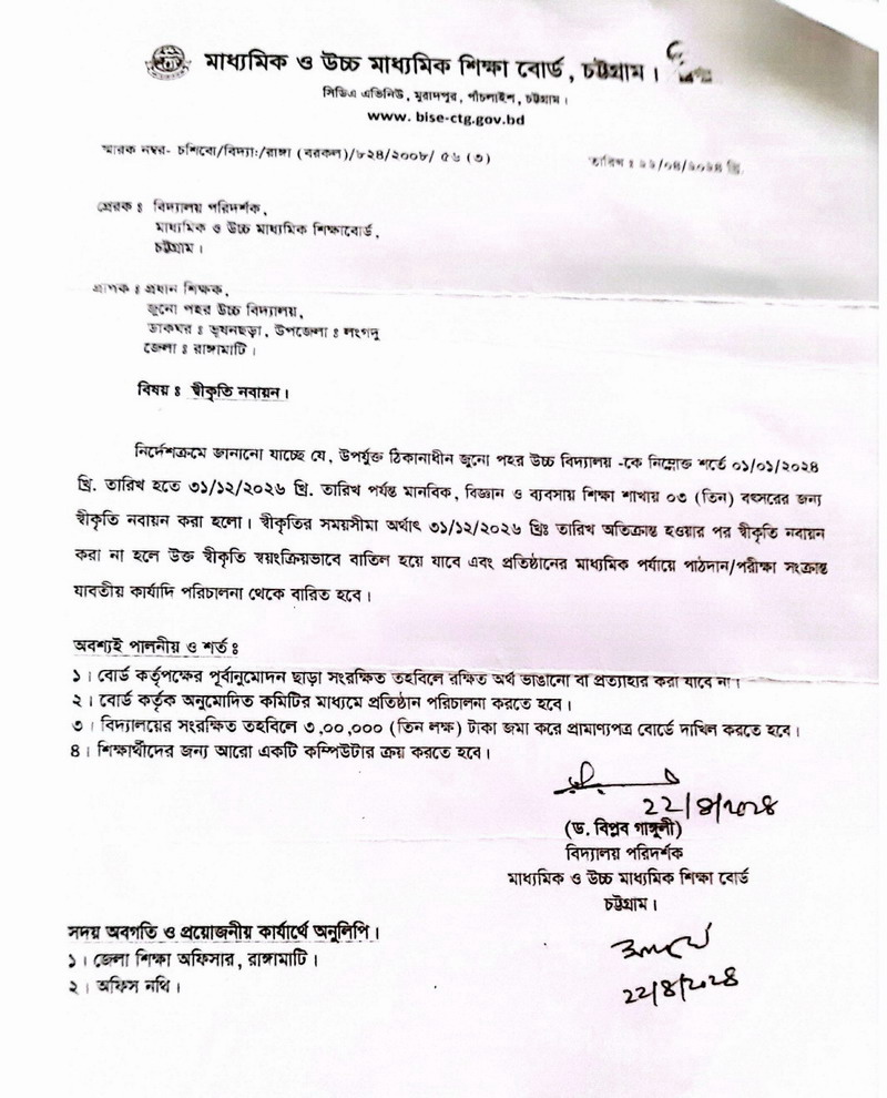 মানবিক, বিজ্ঞান ও ব্যাবসা শাখায় স্বীকৃতি নবায়ন